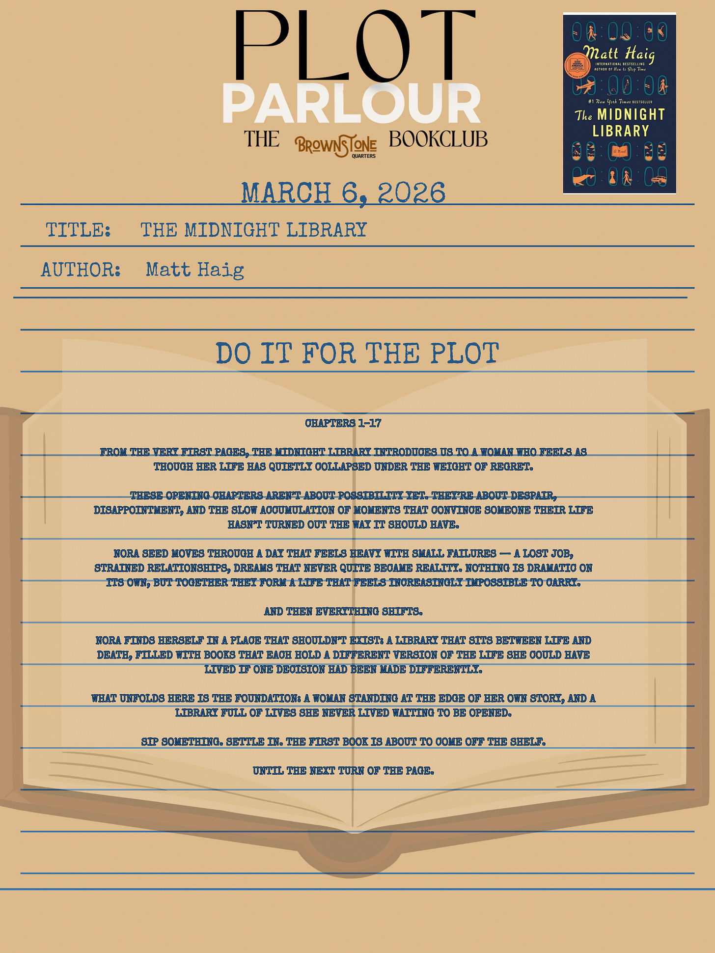 PLOT PARLOUR: THE MIDNIGHT LIBRARY BY MATT HAIG-DO IT FOR THE PLOT